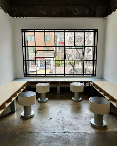 또한 카페 곳곳에 놓인 소품들이 단순한 장식이 아니라 스토리를 품고 있어 눈길을 끈다. 철제 조형물, 실험적인 그래픽 포스터, 독특한 조명 오브제 등이 자리를 잡고 있는데, 방문객들이 자연스럽게 사진을 찍고 싶게 만드는 요소들이다. 연희동의 다른 감성 카페들과는 확연히 구별되는 독창적인 무드 덕분에, 이곳은 포토스팟으로도 인기가 많다.