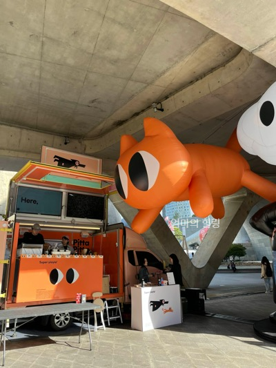오렌지 컬러의 푸드트럭은 단순히 시각적인 포인트를 넘어, ‘행복하고 따뜻한 순간’을 디자인한다는 브랜드의 철학을 그대로 담고 있었다. 멀리서도 한눈에 띄는 색감, 그리고 고양이 캐릭터의 귀여운 표정이 차가운 도시 공간 속에서 묘하게 안도감을 주었다.
